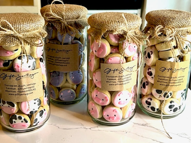 Frasco de galletas decoradas en packaging regalo, este dia del Niño sorprende con tiernas y divertidas galletas decoradas con animalitos (44-48 unid)