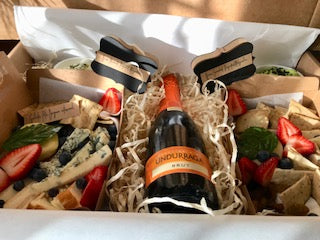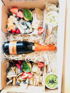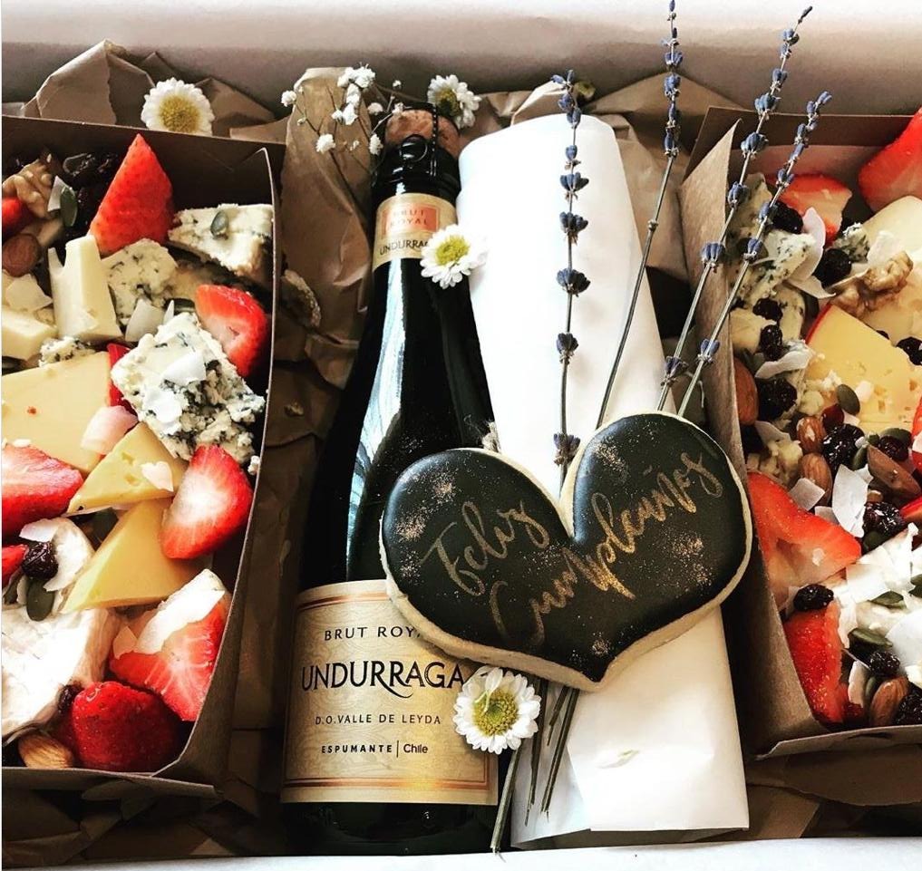 Elige esta caja para una persona que le encanta quedar bien, encuentras una exquisita seleccion de quesos, fruta y frutos secos, junto a una salsa para acompañar y galletas artesanales de masa madre.